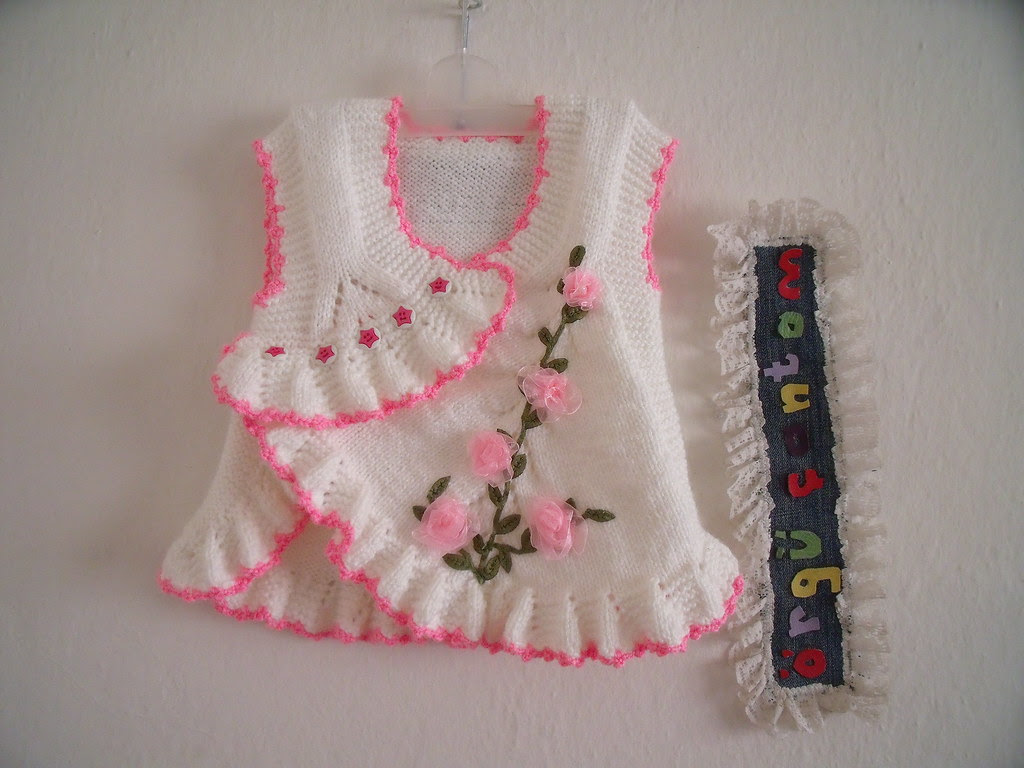 Gelelim yeleğe  daha önce yavruağzı ve yeşilini örmüştüm  Tuğba beyaz   da isteyince bir tane de beyaz yaptım hatta ben bunu örerken sevgili Begonvilliev arkadaşımız   yeleğin beyazı çok hoş olur diye yorum bırakmıştı sağ olsun sevgiler kendisine:))